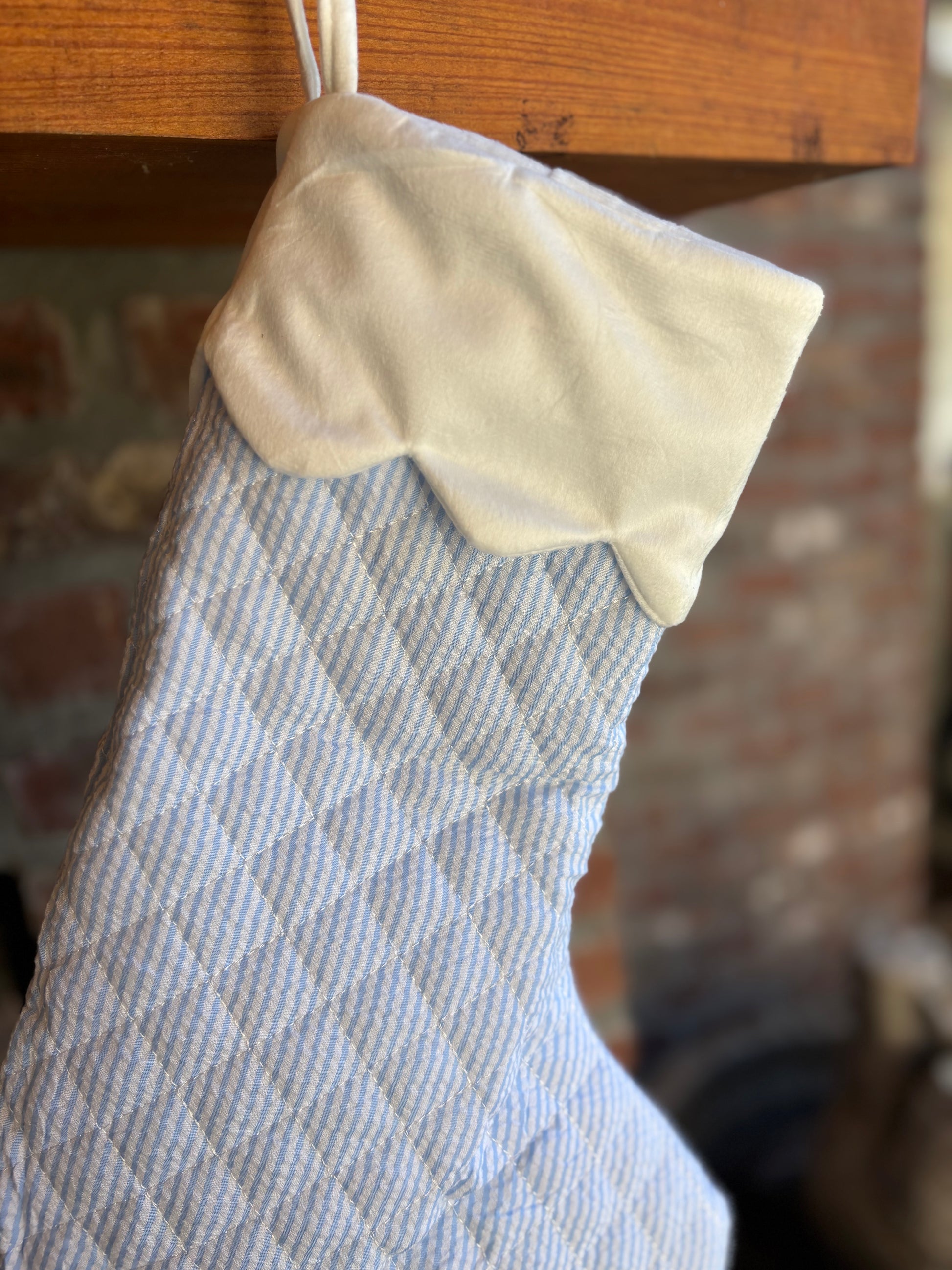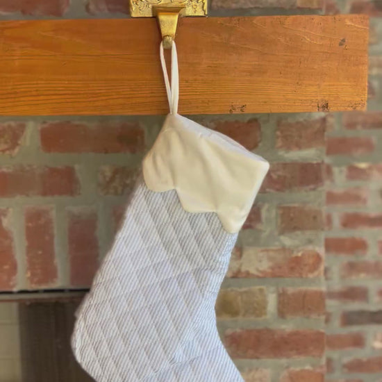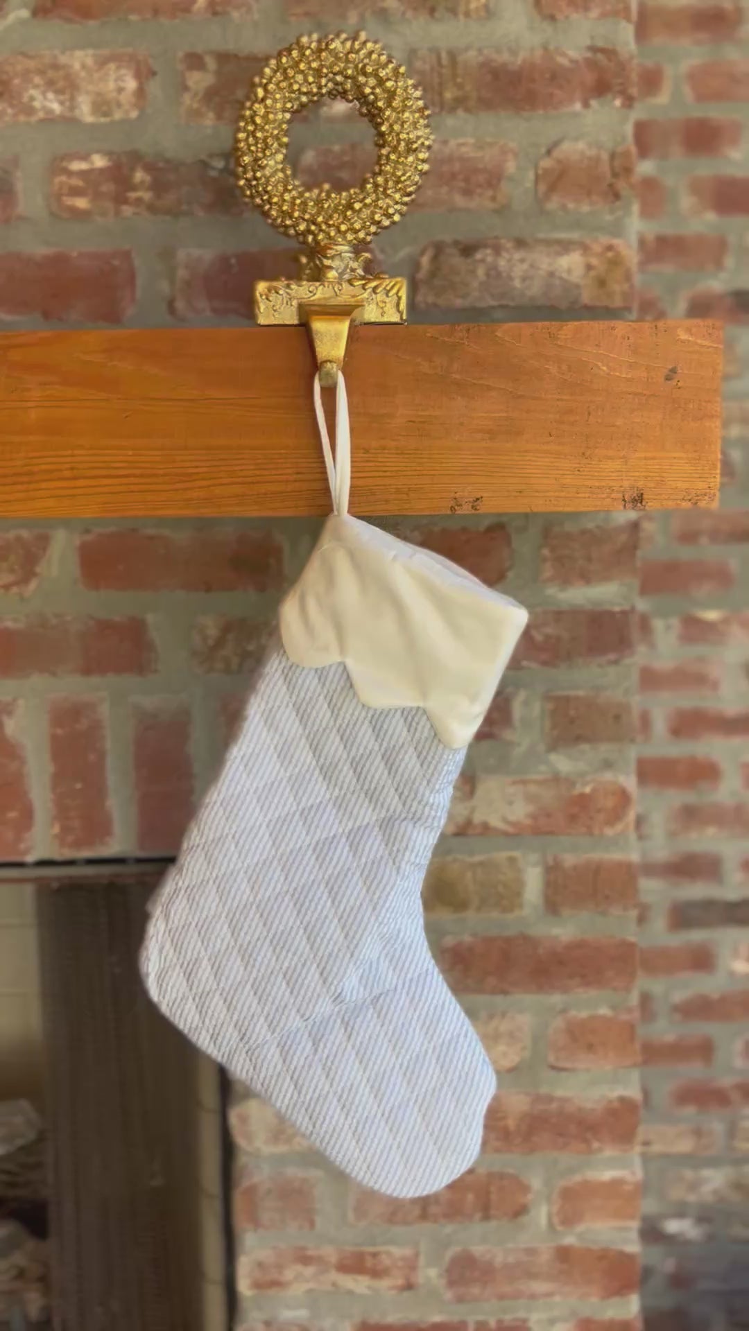 The stockings were hung by the chimney with care... Made to be filled with tiny treasures, trinkets, and all the joy that Santa and his busy elves can bring. -14" height x 11" width -Embroidery friendly
